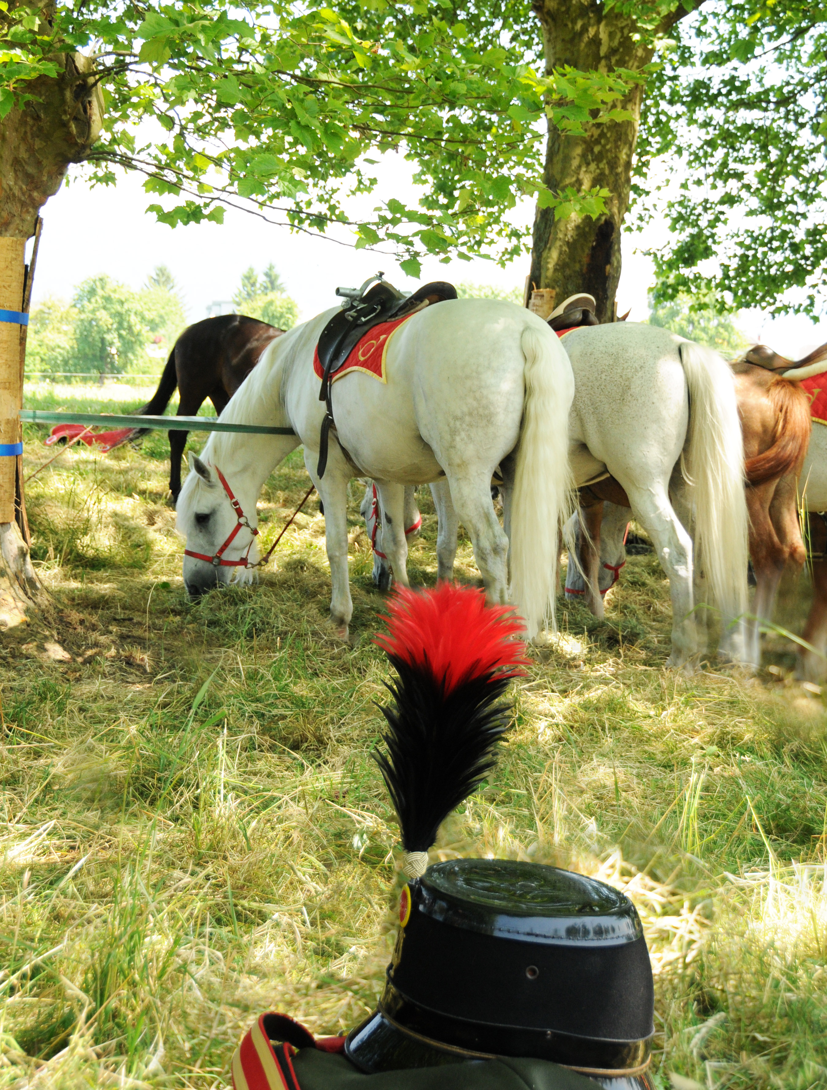 Die Pferde der Reitermusik vor dem Umzug