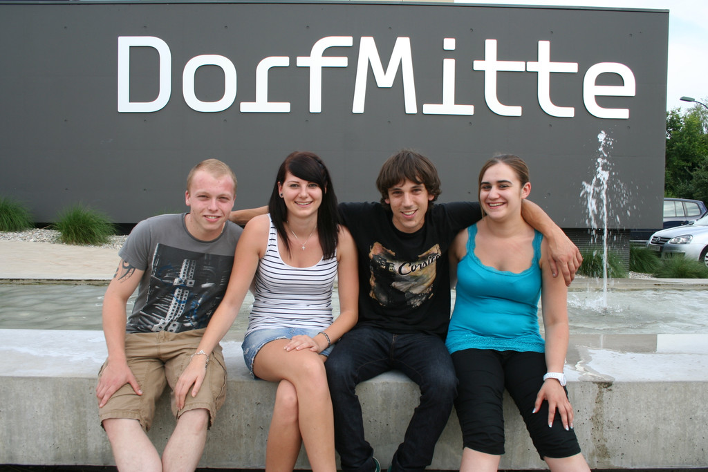 "Chillen" bei der DorfMitte in Koblach (Alex, Alina, Wolfi und Nina.