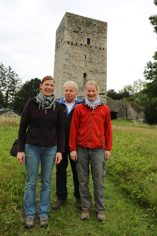 Burgchef Markus Kevenhörster mit Archäologin Tamara Senfter vom Team der TALPA GnbR (li) und Praktikantin.