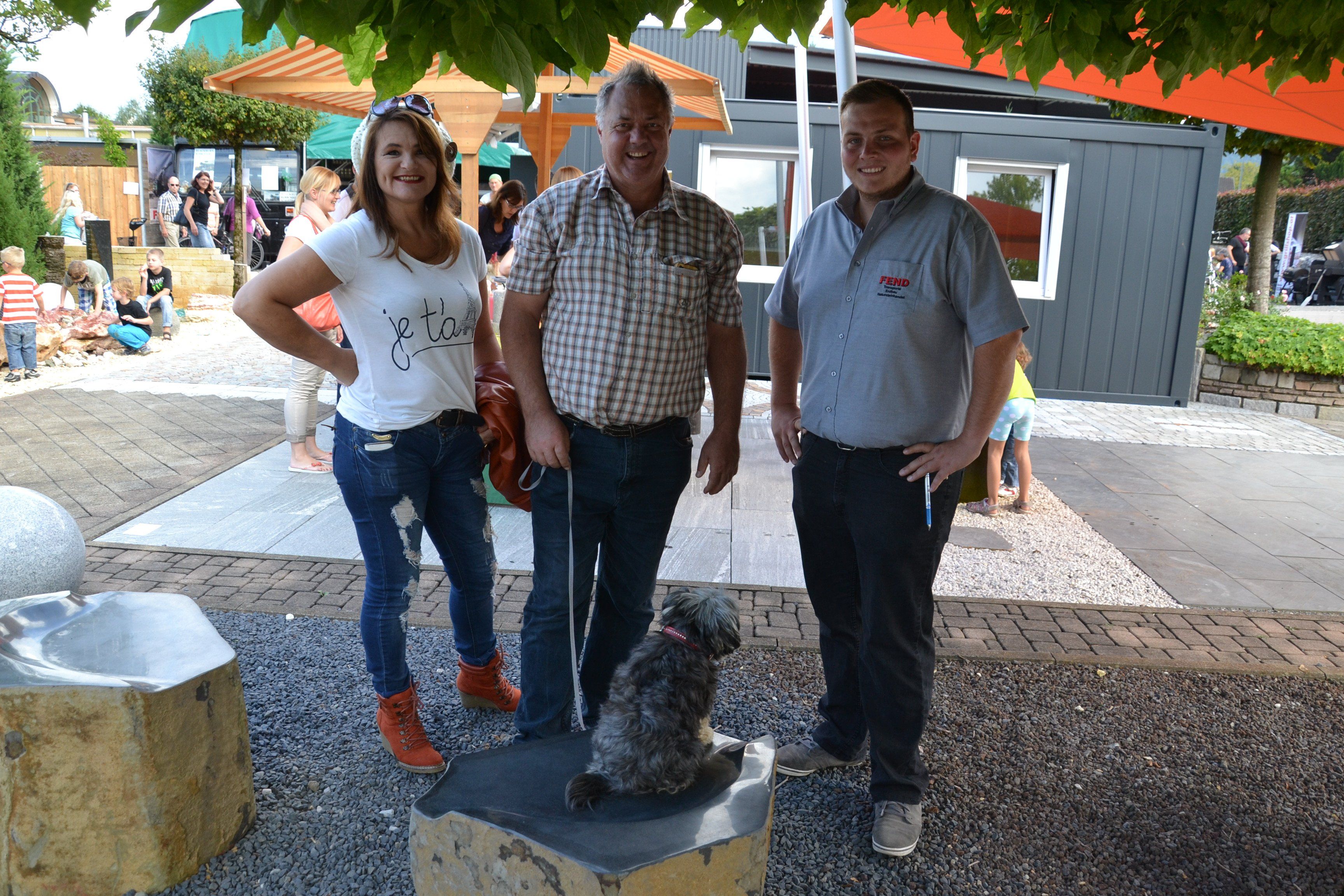 Manuela Madlener, Karlheinz Koch, Coco und Michele Arbitrio (FEND Naturstein)