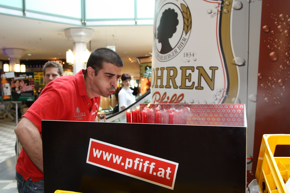 Besucher des Messeparks bei der Mohren Pfiff Geburtstagaktion im Messepark