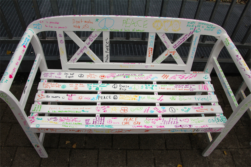 Die Schüler und Lehrpersonen schrieben dutzende Botschaften auf die Friedensbänke.