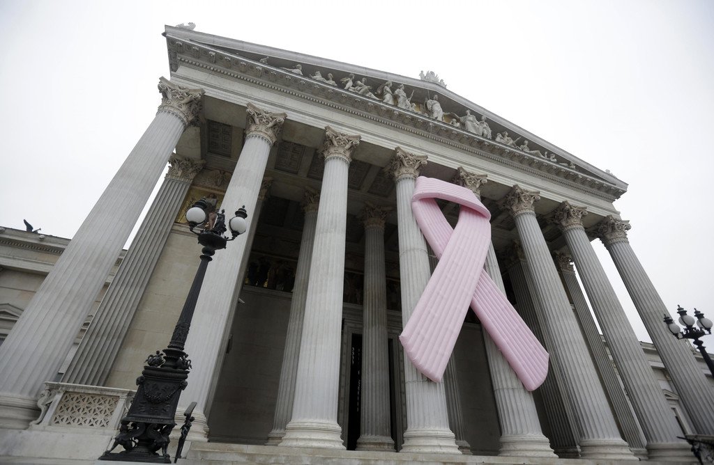 Pink Ribbon ziert das Wiener Parlament