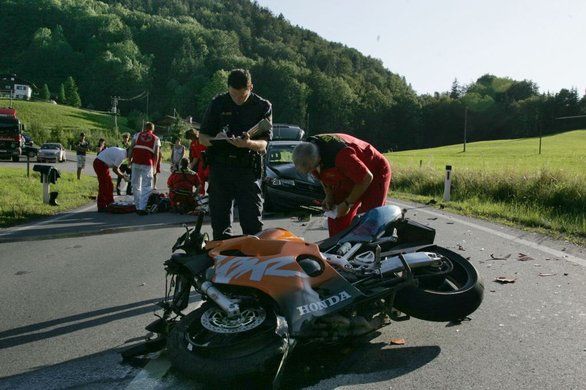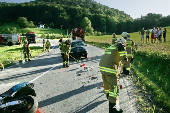 Auto stößt frontal mit Motorrad zusammen