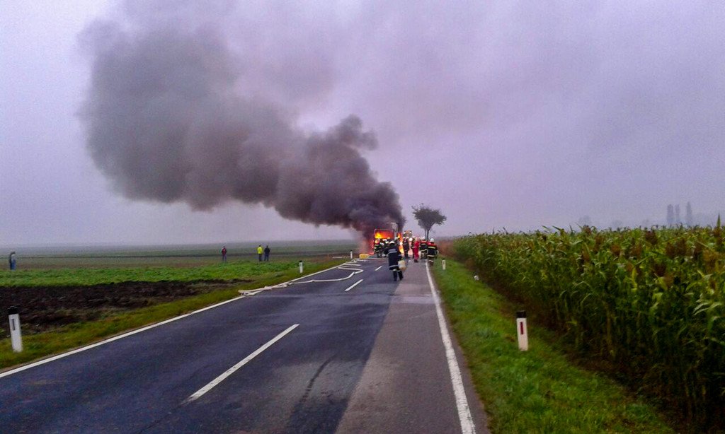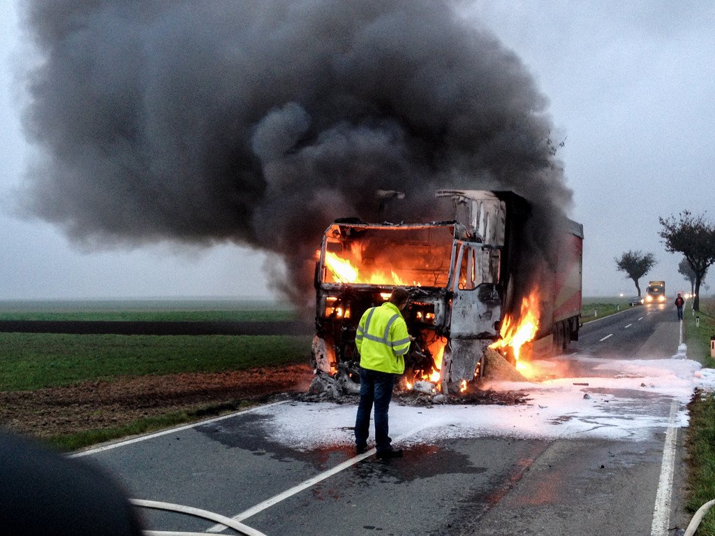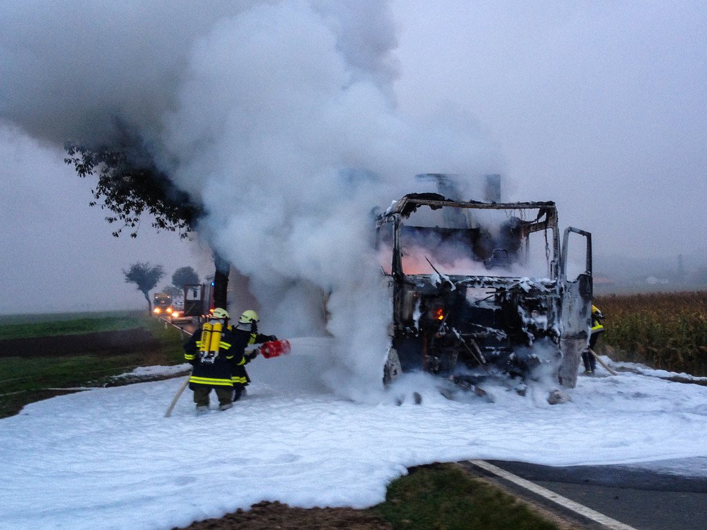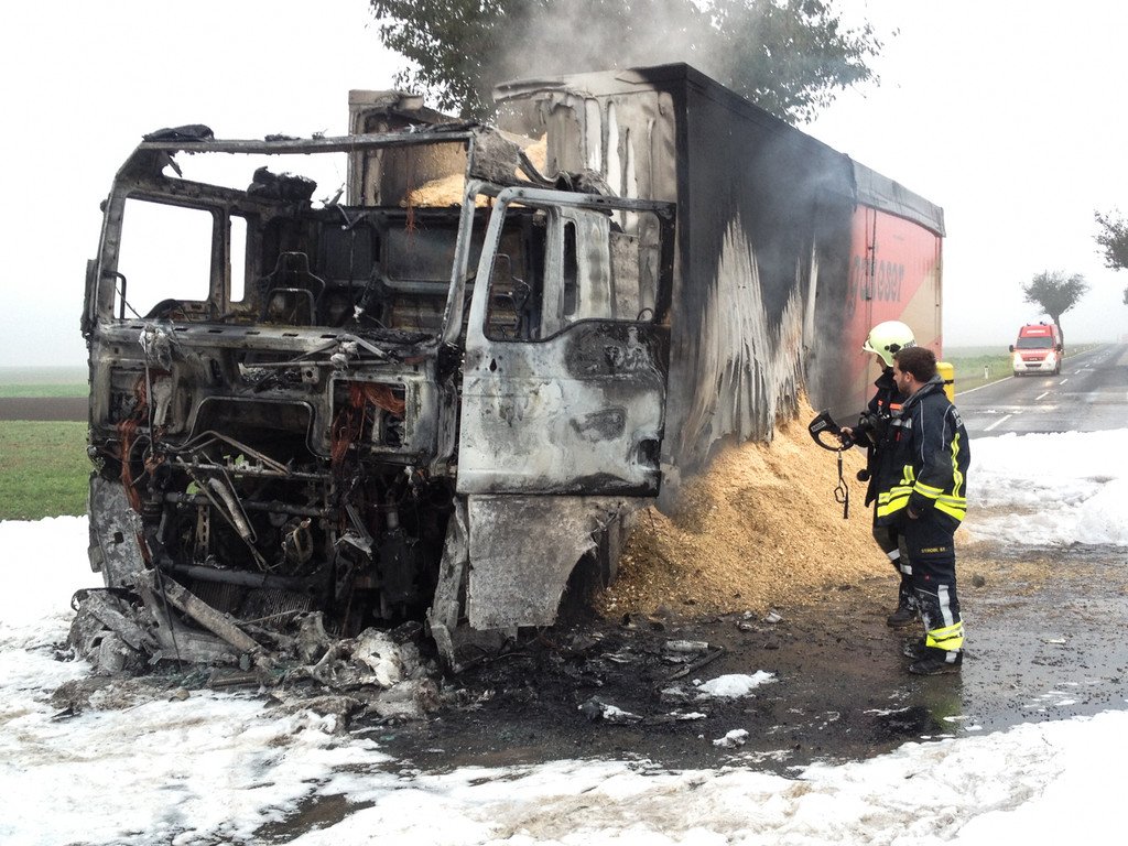 Lkw mit Sägespänen im Bezirk Hollabrunn in Brand