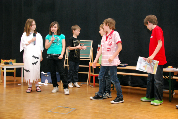 Die Schüler schlagen dem Gespenst vor, in die Tonisburg umzuziehen.