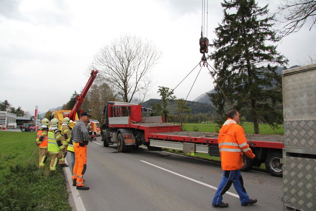 Nenzing: Sattelzug rutscht von der Straße
