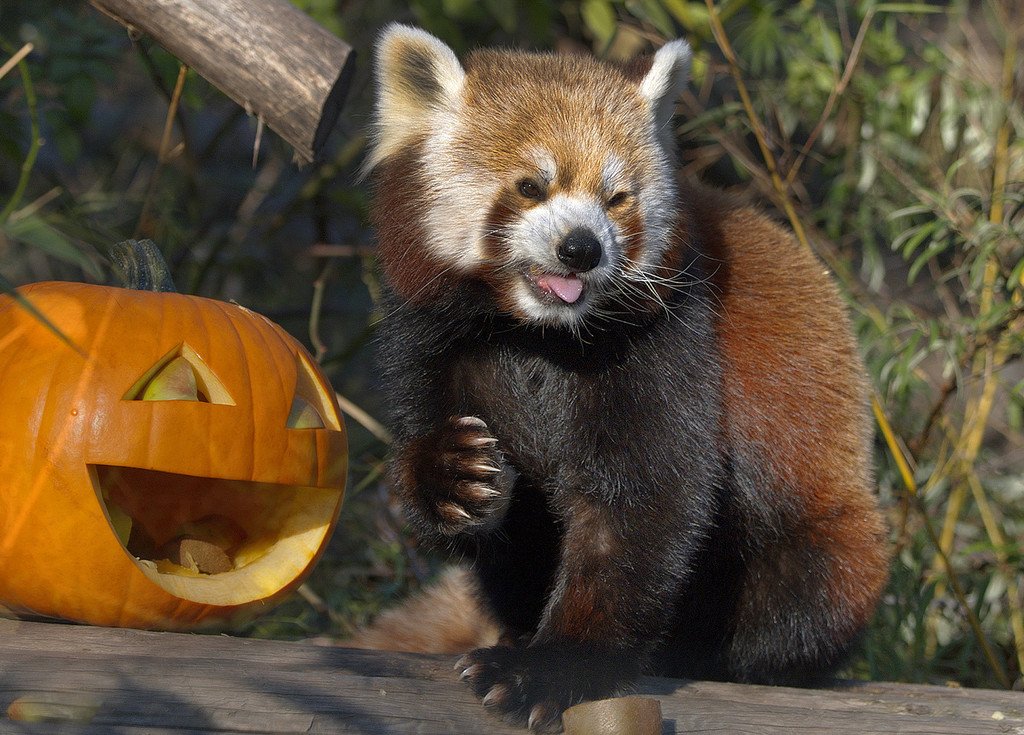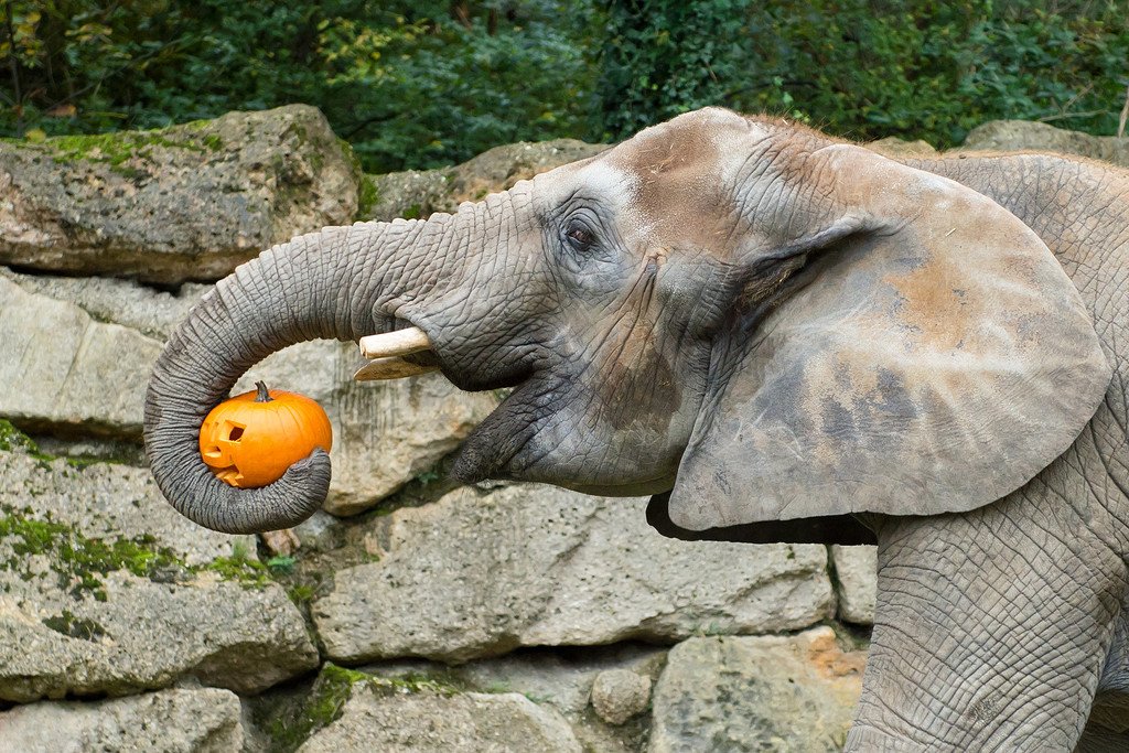 Halloween im Tiergarten Schönbrunn: Tiere haben Spaß mit Kürbissen