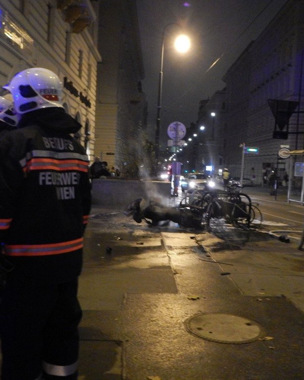 Brand in der Wiener Innenstadt: Motorrad mit Pkw kollidiert