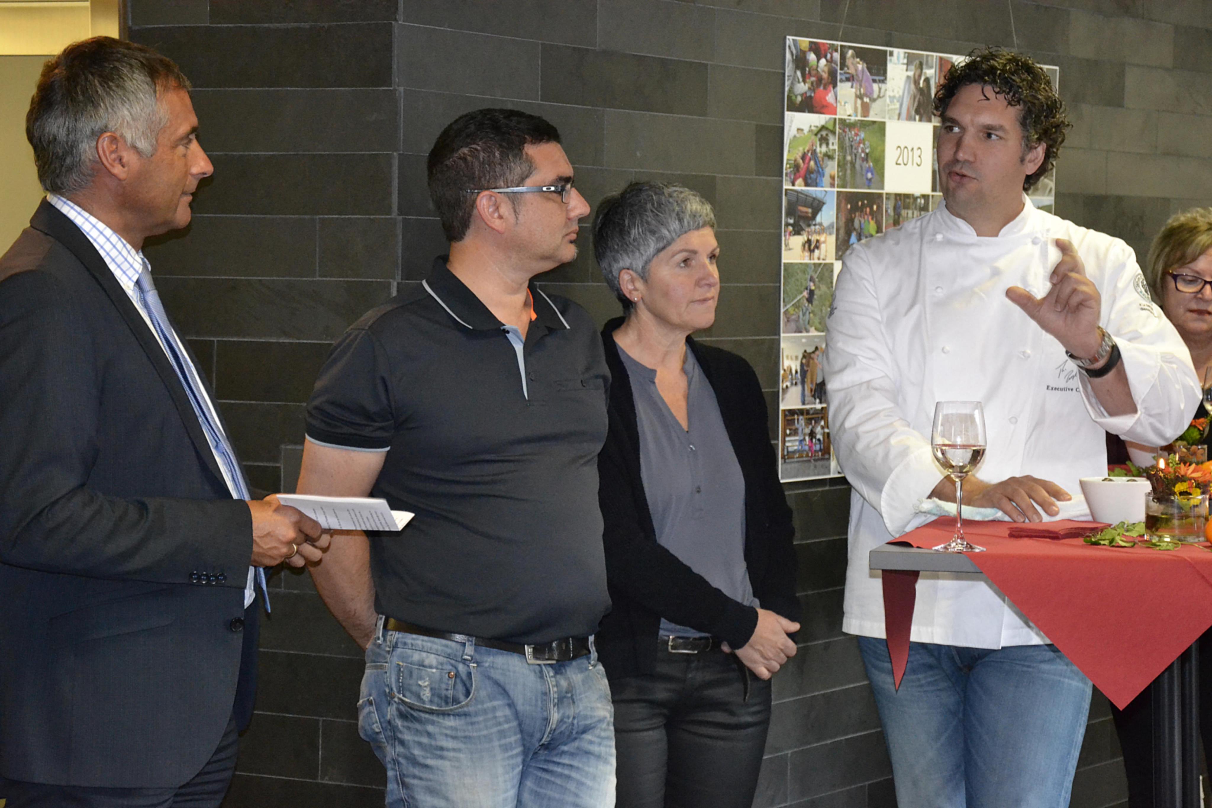 v.l.n.r. Dir. Markus Walch (Vorstand Raiffeisenbank Lech), Helmut und Hildegard Eberle (Ölmanufaktur), Thorsten Probost (Executi