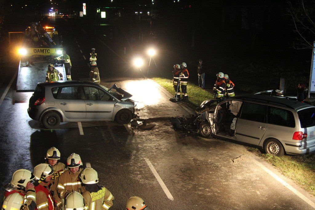 Unfall in Hohenems mit eingeklemmten Personen