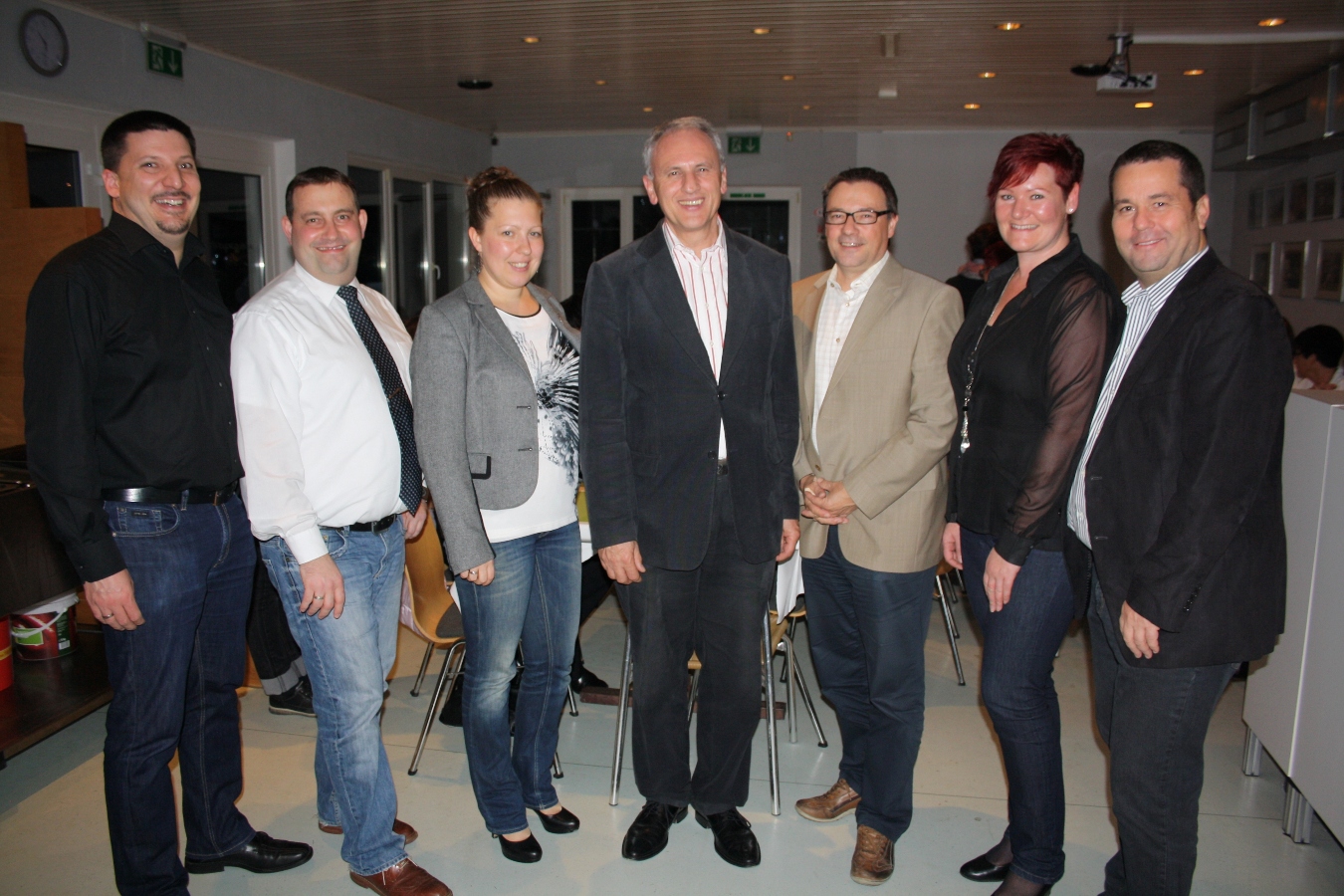 Kassier Volker Stefani, Kapellmeister Matthias Walser, Kulturreferentin Vera Fechtig, Vorstand Wolfram Baldauf, Vize-Bürgermeister Christophorus Schmid, Schriftführerin Caroline Stefani und Vizevorstand Achim Langegg, von links.
