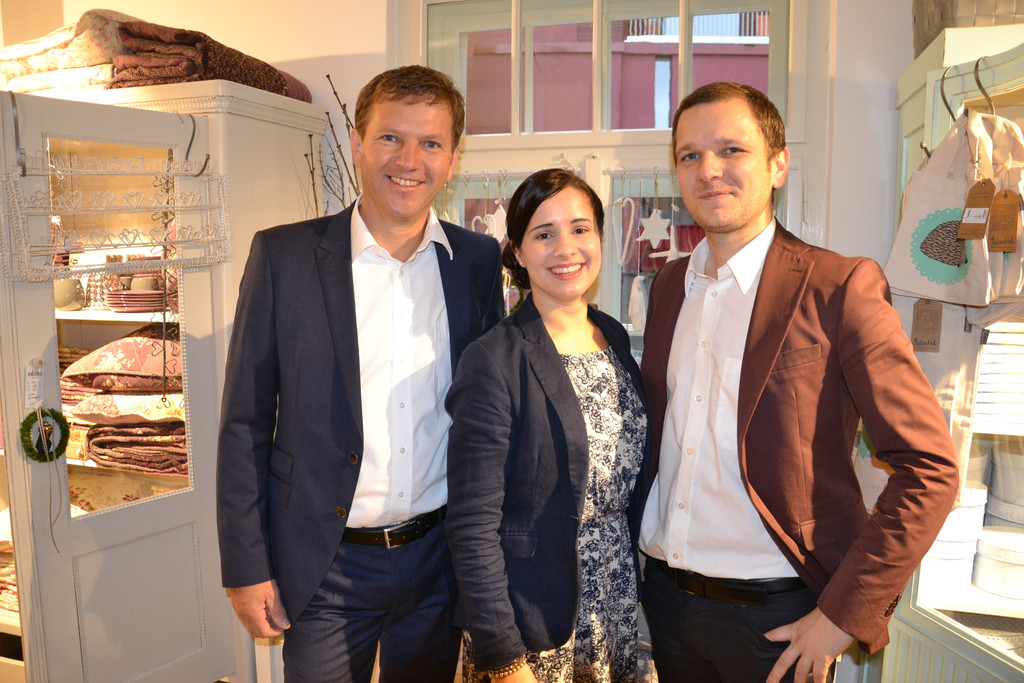 Joe Welte (Prisma), Filialleiterin Carmen Moosbrugger und Thomas Fink (ZM3)