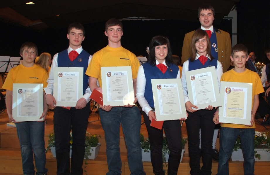 JMLA-Träger: Tobias Mähr, Martin Duelli, Armin Duelli, Julia Lins, Sandra Berchtel, Simon Duelli.