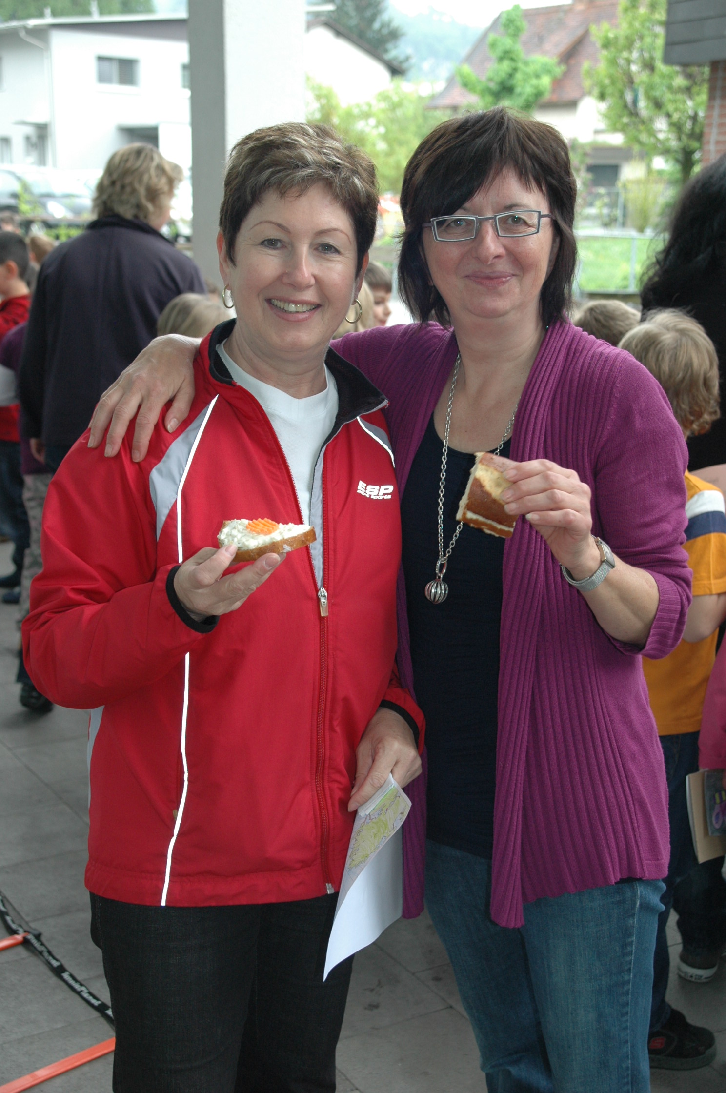 (li.) Direktorin Reingard Domig mit einer Mutter / Elternvertreterin: Auch Erwachsene brauchen eine gesunde Pause