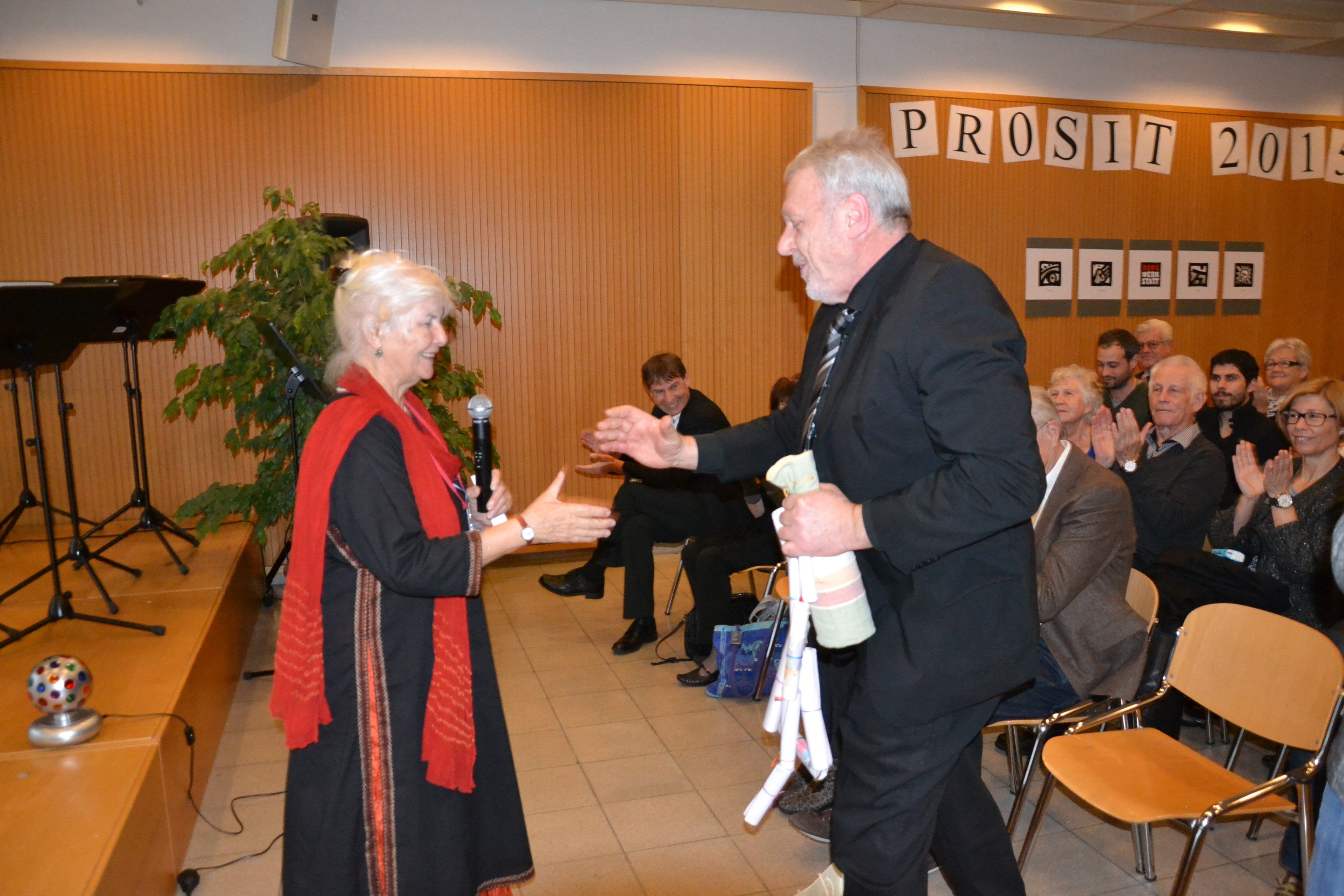 Jose Oberhauser bekommt ein Geschenk von Marlies Küng-Rüdisser