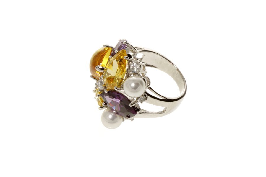 Ring Zirkonia gelb-amthyst-Perlen rhodiniert um EUR 65,00