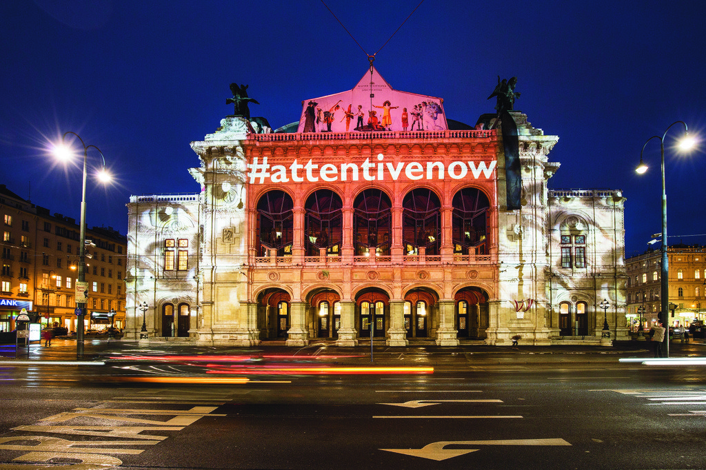 Lichtinstallation von Gerry Hofstetter an der Wiener Staatsoper