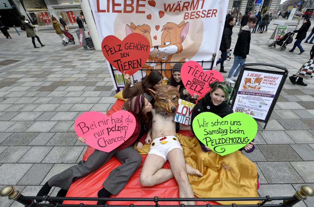 VGT protestierte in Bett auf der MaHü gegen Pelz