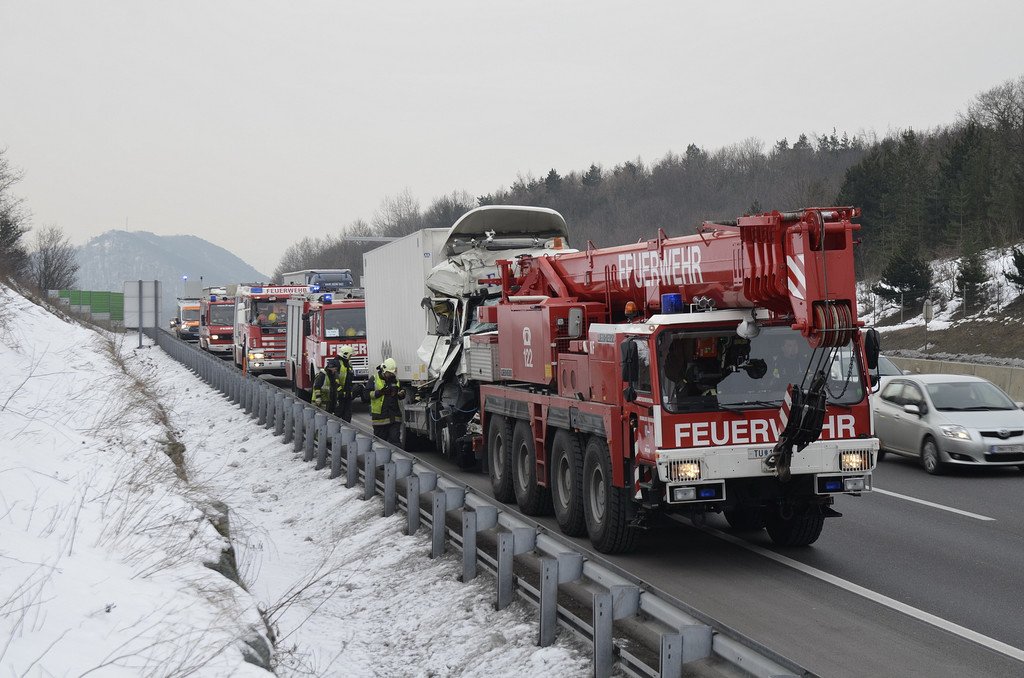 Kraneinsatz nach Lkw-Unfall auf der A21
