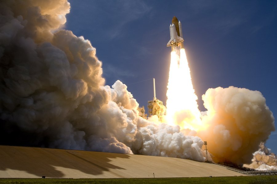 Raumfähre "Atlantis" auf dem Weg zu ihrem letzten Flug