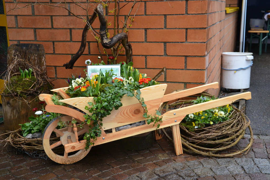 Frühlingshaft dekoriert - der Eingang zum Waldorfkindergarten in Götzis