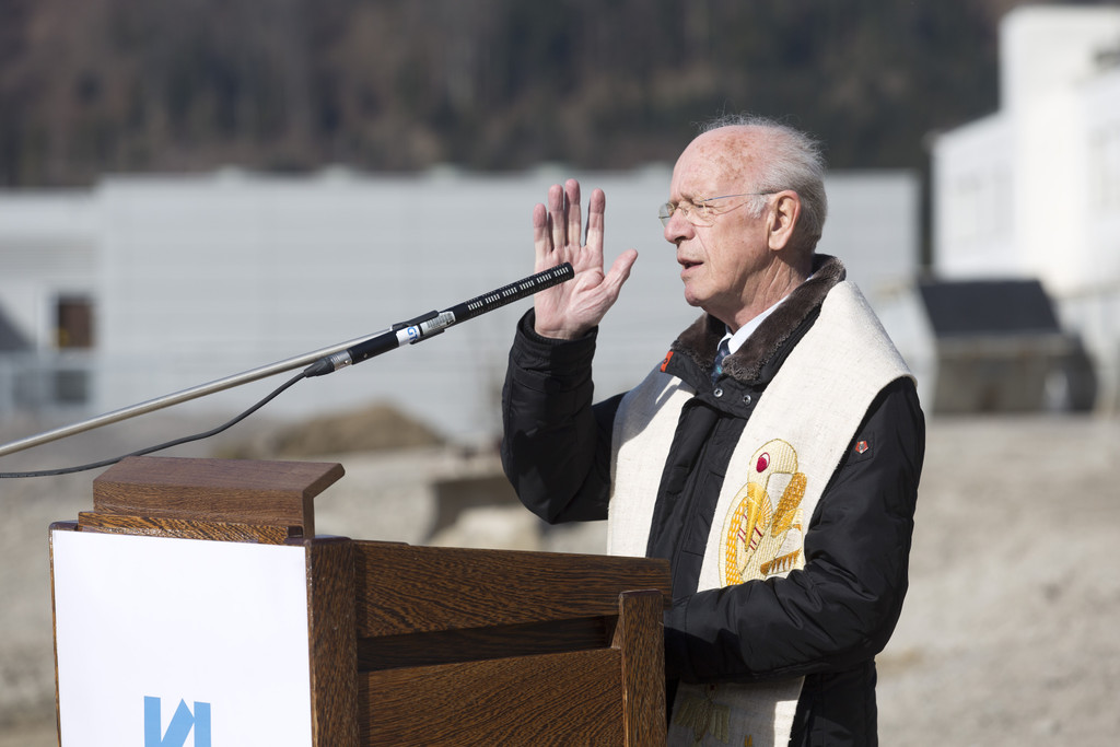Krankenhausseelsorger Dr. Peter Rädler segnete die Baustelle. (c) Dietmar Mathis