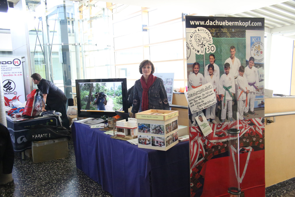 Info Stand des Sozialprojekts www.dachuebermkopf.com Foto Verein