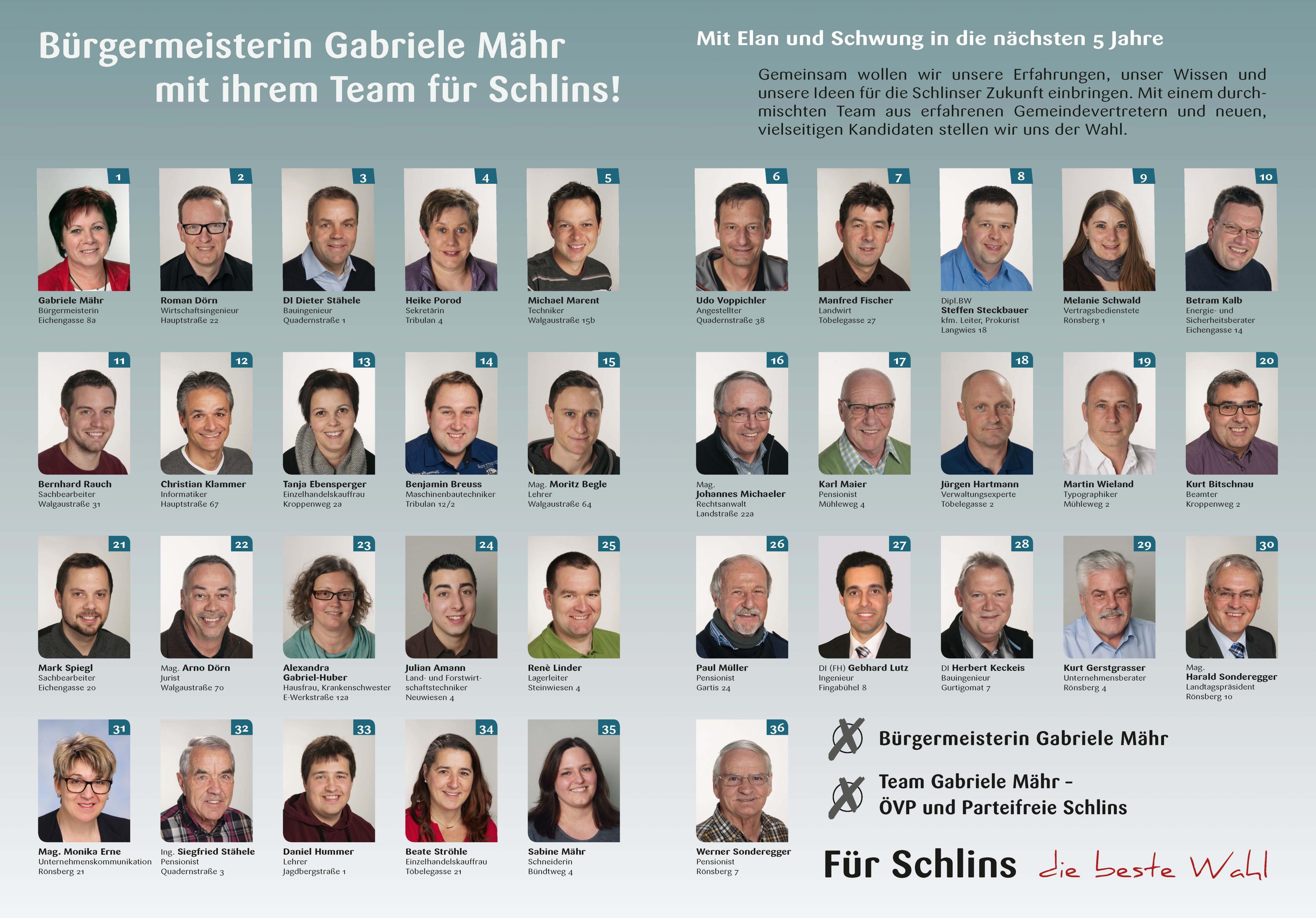 Team ÖVP und Parteifreie - die beste Wahl für Schlins