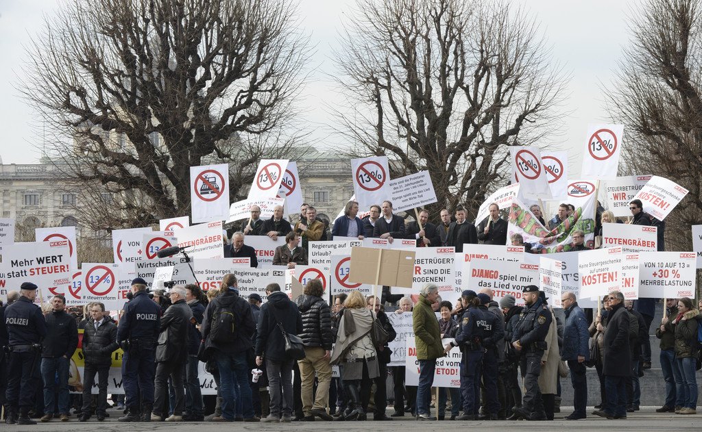 Wirte-Protest gegen Steuern in Wien vor dem Bundeskanzleramt