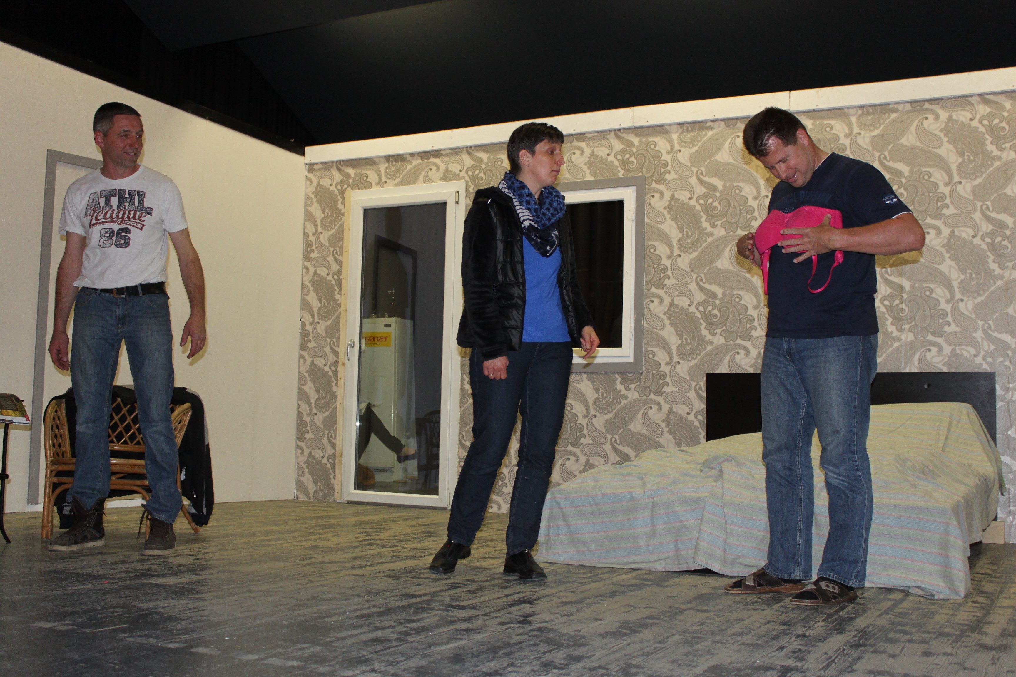 Theaterprobe zu "Wellness mit Nebenwirkungen" MACAMOTH BIROKO Fraxern, März 2015