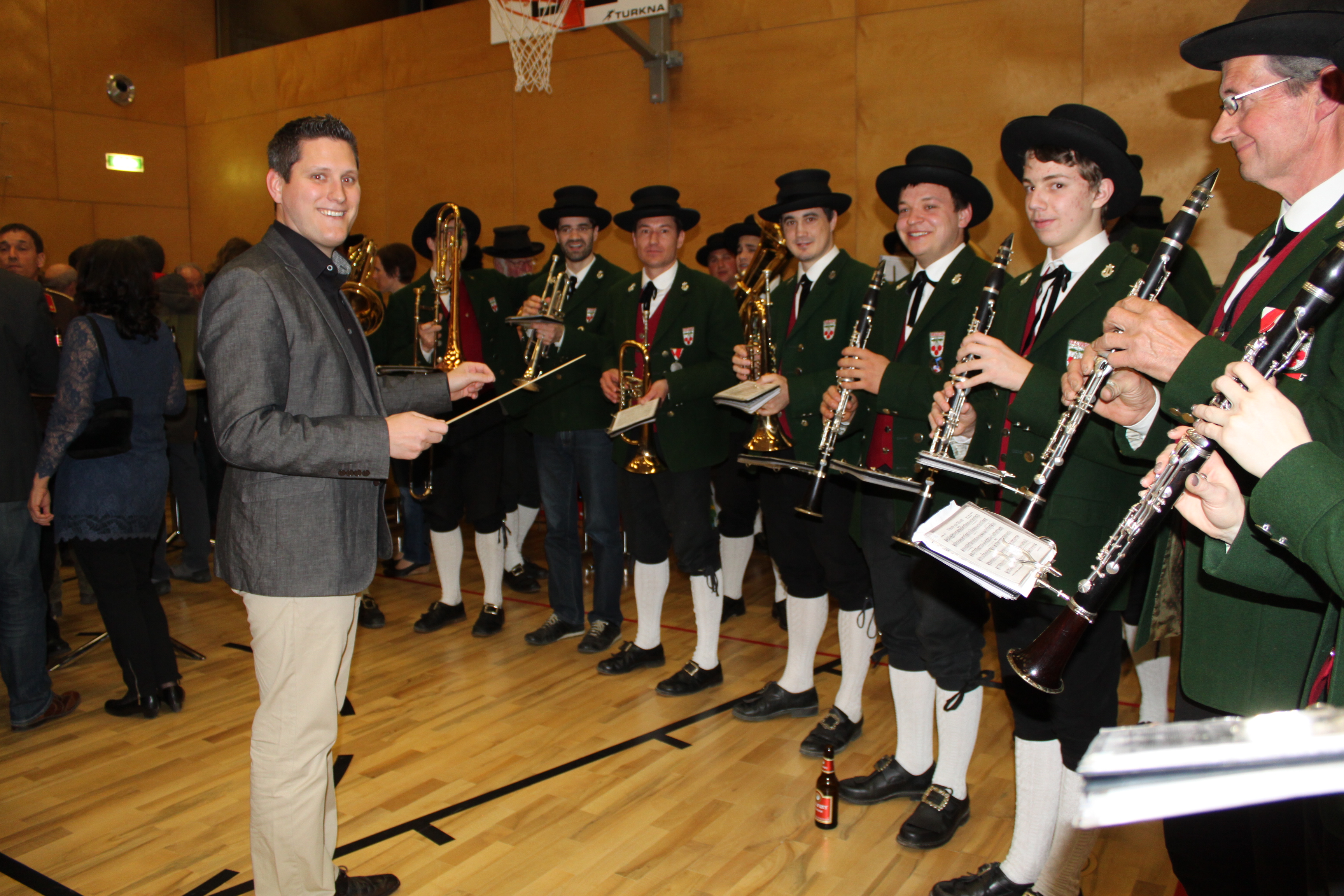 Der neue Bürgermeister Steve Mayr dirigiert die Bürgermusik Fraxern.