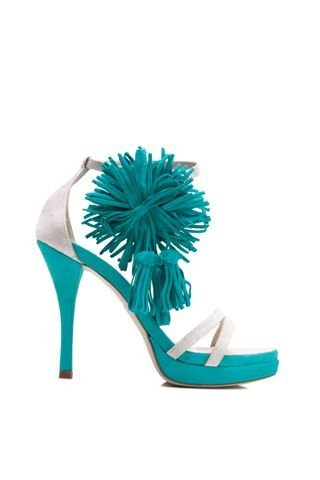 High Heel Sandalette "COCCO": türkise Riemchensandaletten in Bicolor Optik mit frechen Fransen (Isabella Lorusso): € 1