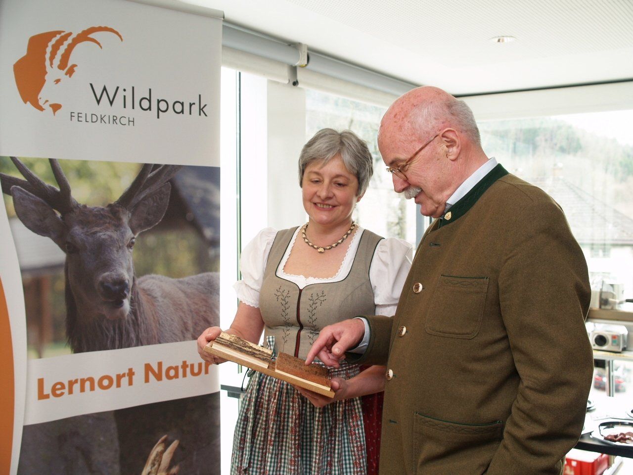 Wald - und Jagdpädagogin Ingrid Albrich mit Heiner Kathan ( Vorstandsmitglied Wildpark)