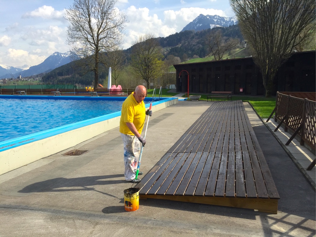 Alt-Bademeister Erwin Wehinger legte beim Malen noch selbst Hand an.