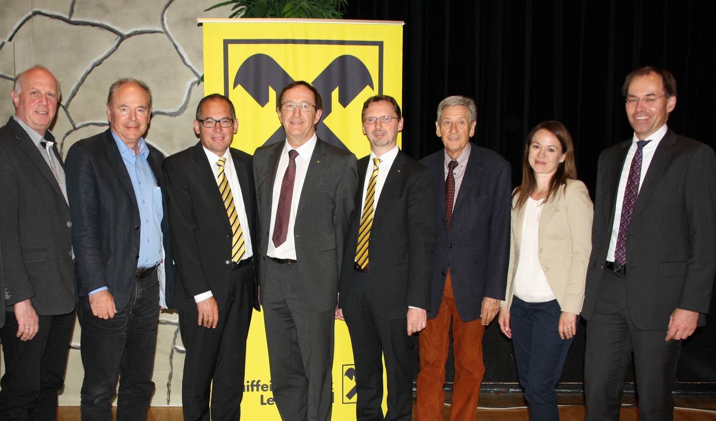 Aufsichtsrat und Geschäftsführung der Raiffeisenbank Leiblachtal: Klaus Immler, Hubert Rupp, VDir. Gustav Kathrein, Aufsichtsratsvorsitzender DI Wilhelm Köb, VDir. Hubert Gieselbrecht, Rudolf Ennemoser, Sandra Jehle-Troy und Dr. Jürgen Reiner, von links.