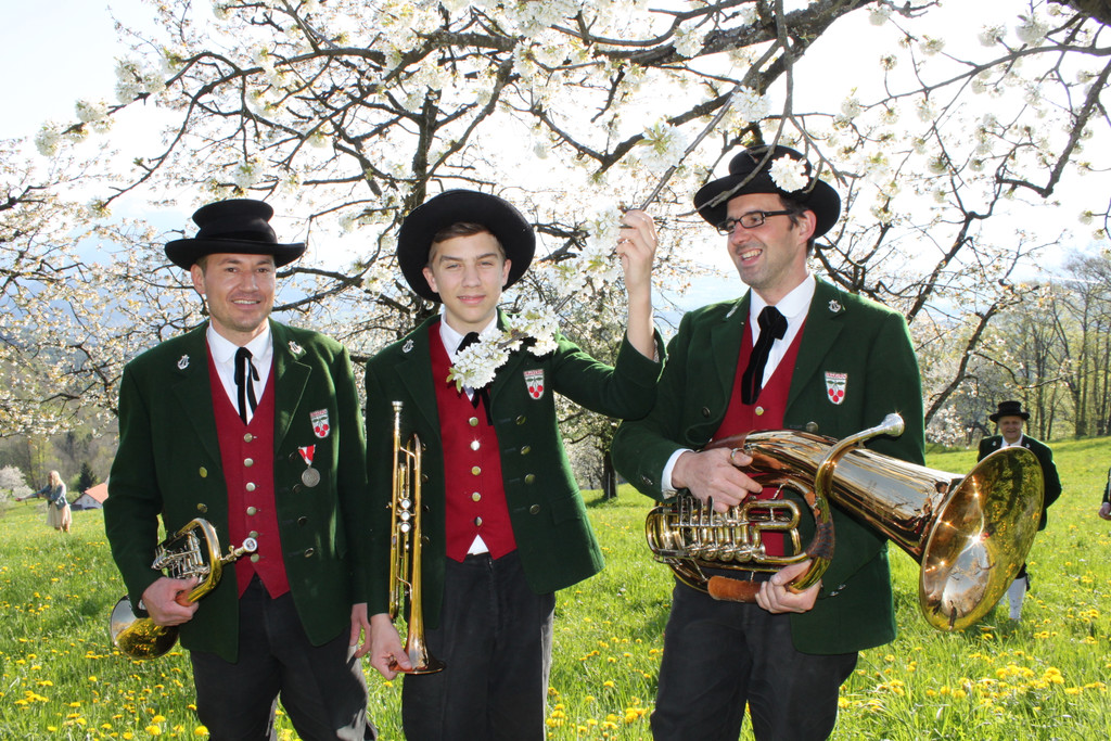 Arnold, Philipp und Bertram beim Musizieren unter den "Kriasi-Böm"