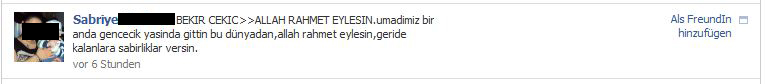 Trauer um Bekir auf Facebook