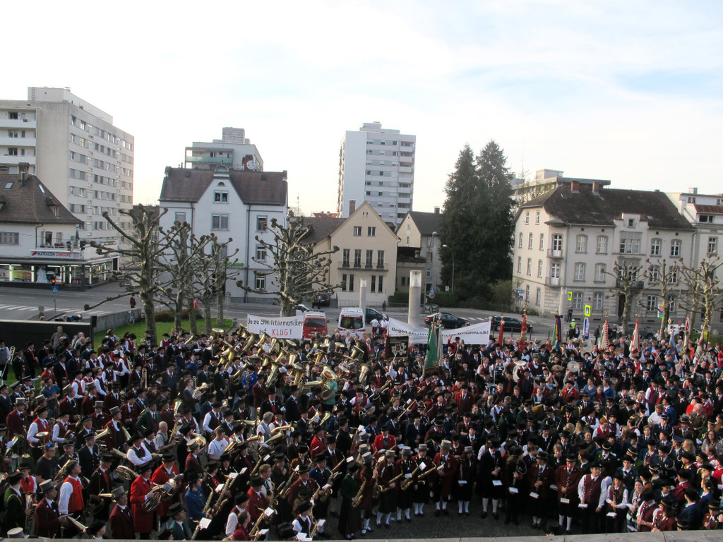 „Protest-Konzert“ des Vereines der Militärmusikfreunde und des Vorarlberger Blasmusikverbandes vor dem Landhaus in Bregenz