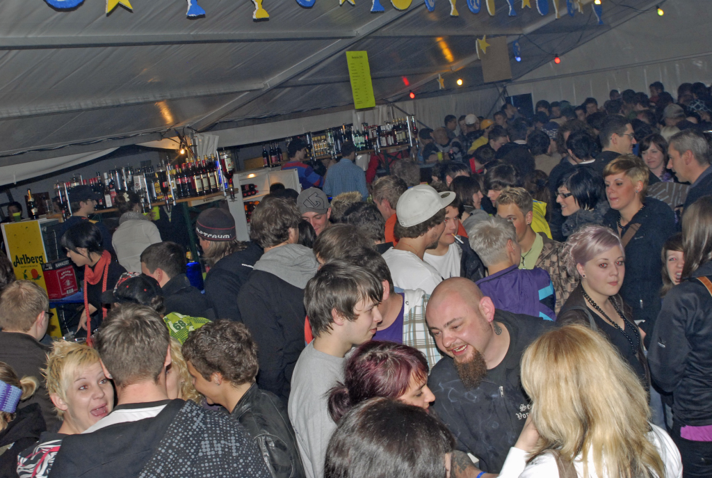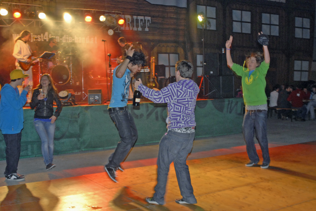Tschagguns, Aktivpark Montafon, Partyband "JUST FOR FUN" musiziert, Lichtshow, tanzen, hüpfen, Barzelt