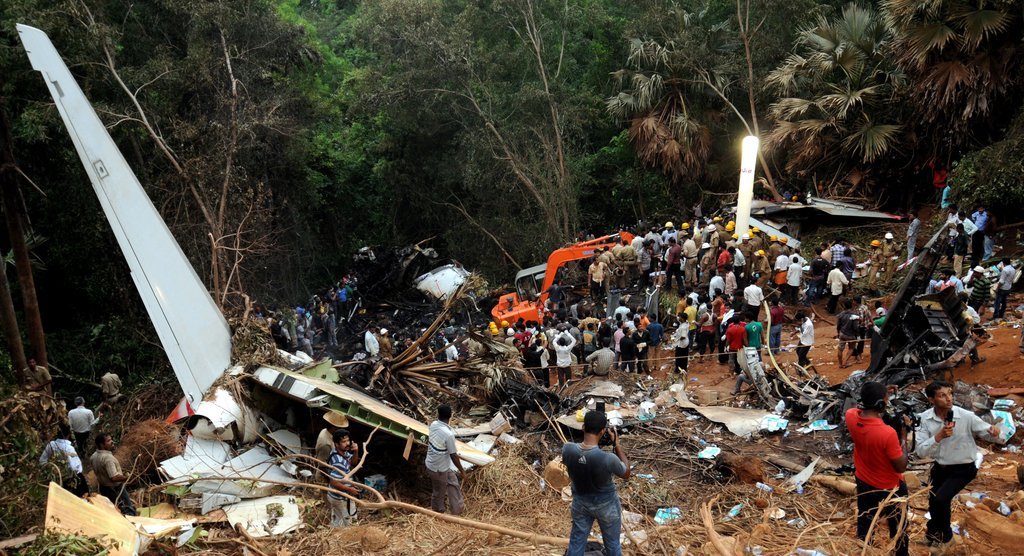 Aufräumarbeiten nach Flugzeugabsturz in Indien