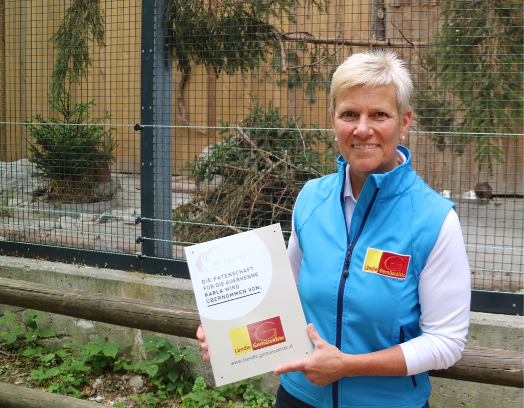 Daniela Fessler von der „Ländle Gemüsekiste“ hat die Patenschaft für die Auerhenne Karla übernommen.