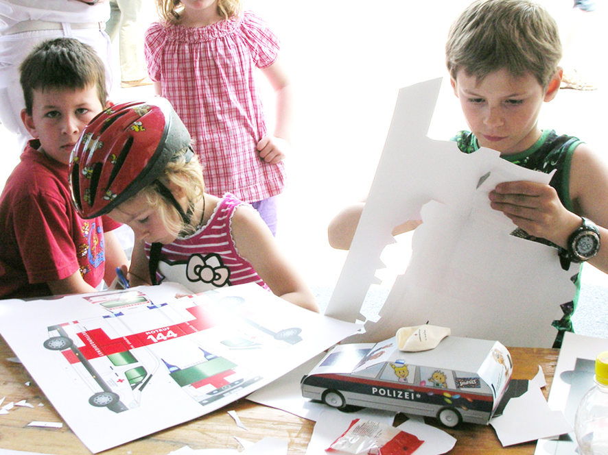 Beim Jugendrotkreuz konnte man Rettungs- und Polizeiautos basteln.