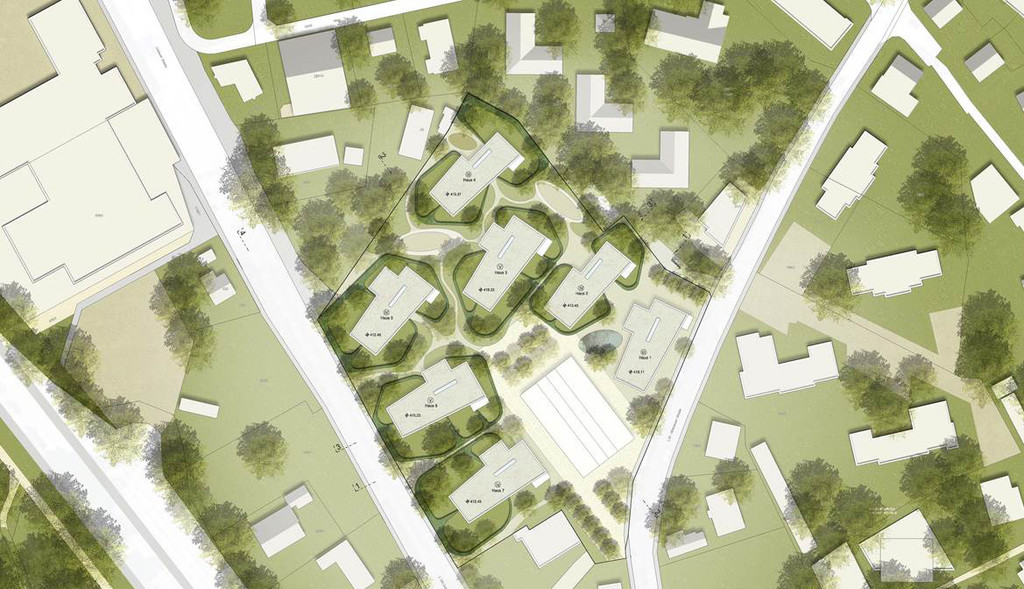 Grundriss der geplanten Bebauung „Bäumlequartier am See“ auf dem ehemaligen Diem-Areal in Lochau. (Grafik: Rhomberg Bau)