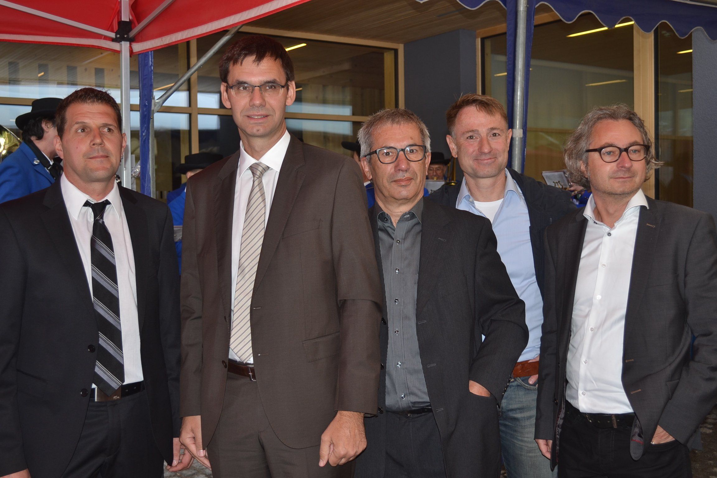 Bgm. Michael Domig, LH Markus Wallner sowie die Architekten Bruno Spagolla, Christian Zottele und Markus Malin.