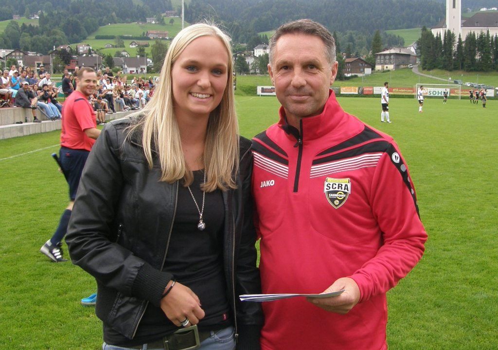 Damir Canadii überreichte dem Alberschwender Damenkapitän Tina Freuis Freikarten.