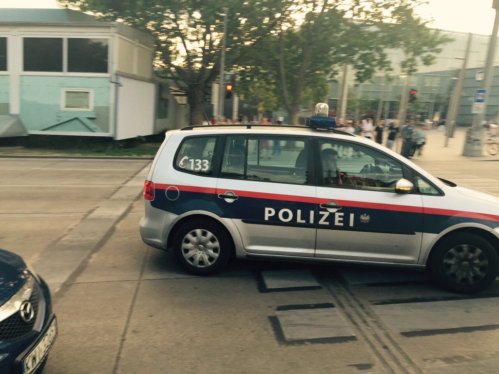 Polizeiauto am Weg zum Unfallsort