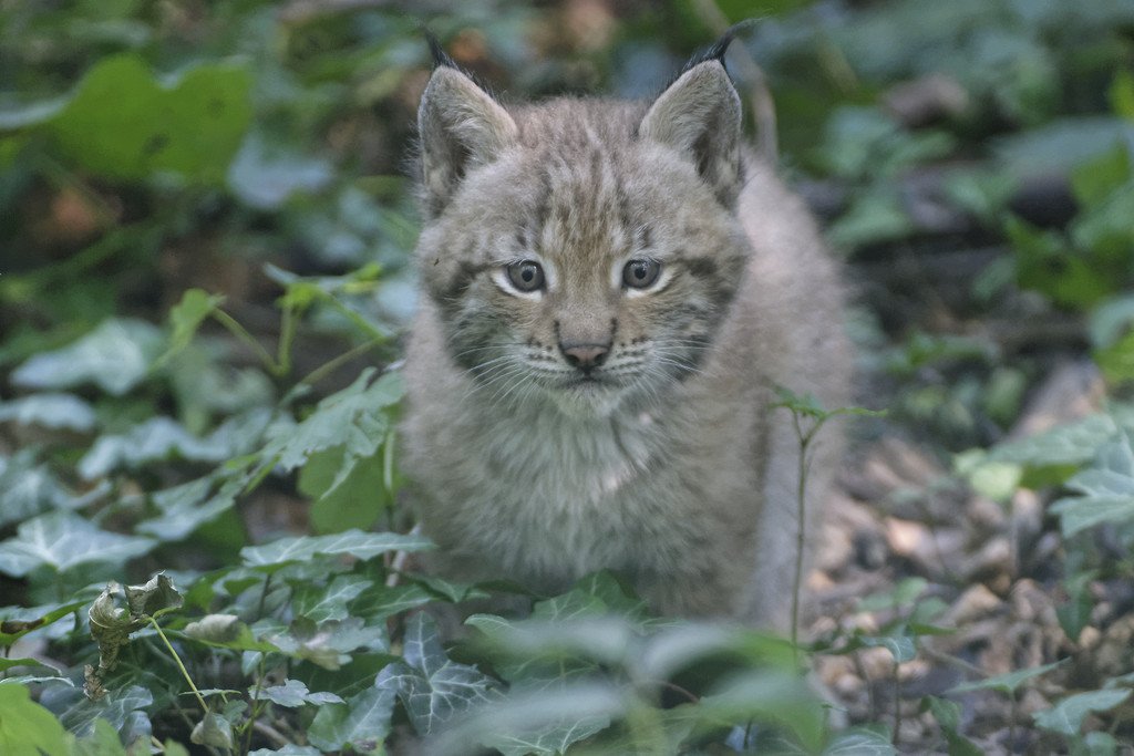 Luchs-Zwillinge erkunden neugierig ihr Gehege im Tiergarten Schönbrunn