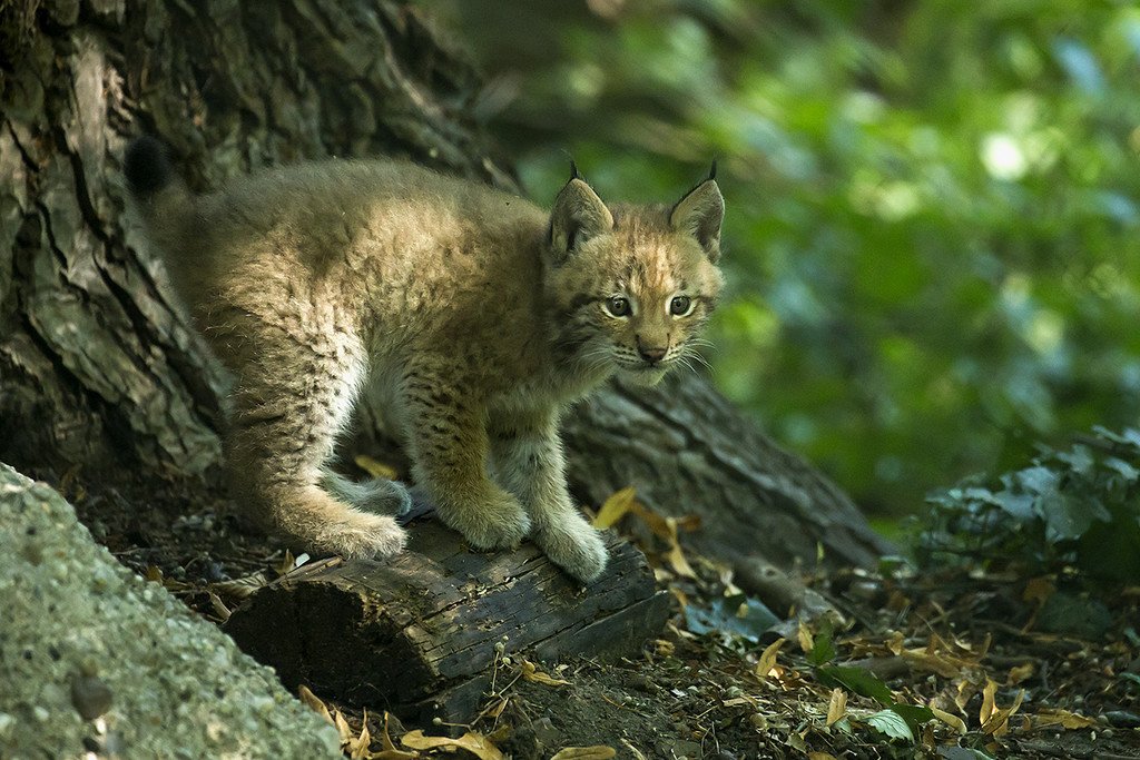 Luchs-Zwillinge erkunden neugierig ihr Gehege im Tiergarten Schönbrunn