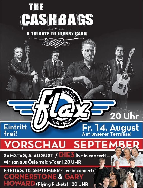Erstmals in Götzis gibt es am Freitag, den 14. August beim FLAX Am Garnmarkt das "Tribute to Johnny Cash" mit der Band von Stephan Ckoehler aus Coswig (D).